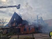 Vor Ort brannte ein Wohnhaus in voller Ausdehnung, sodass ein längerer Einsatz unserer Drehleiter zur Unterstützung der Stadtfeuerwehr Hessisch Oldendorf absehbar war.